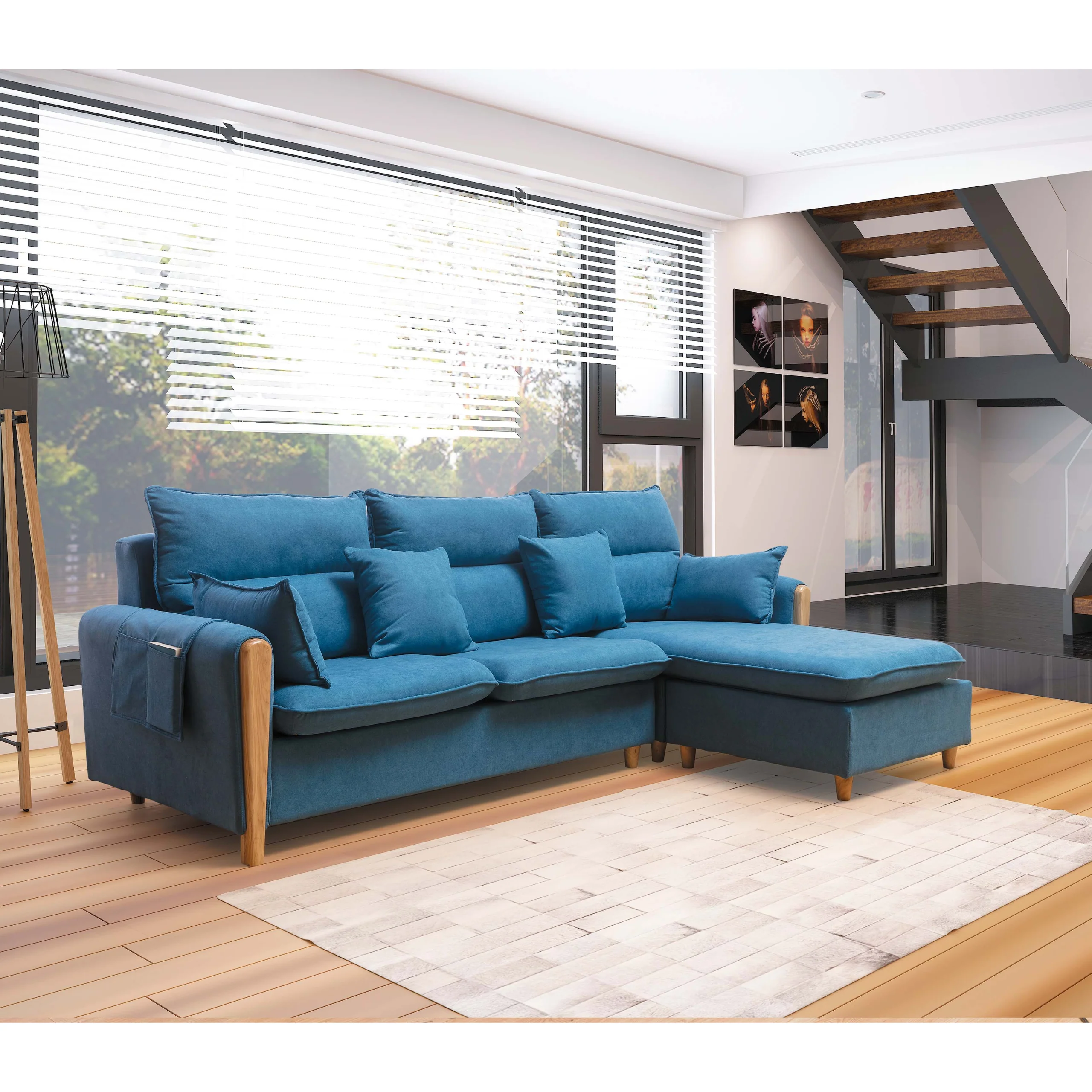 Mirra 米拉 藍色 L型布沙發 234cm