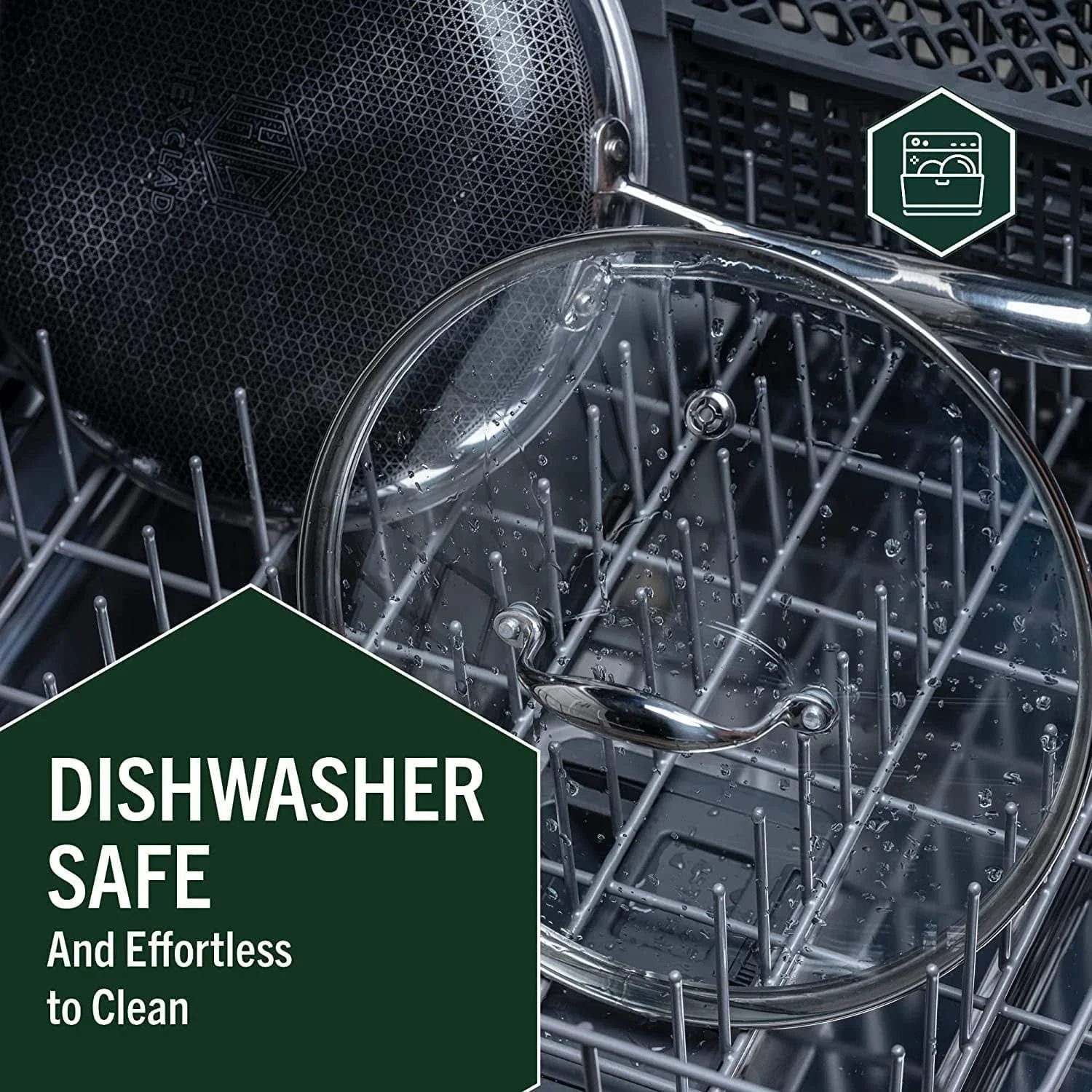 HexClad 6 Piece Hybrid Stainless Steel Cookware Pan Set 8 inch, 10 inch, 12 inch with Glass Lids, Size: One size, Black